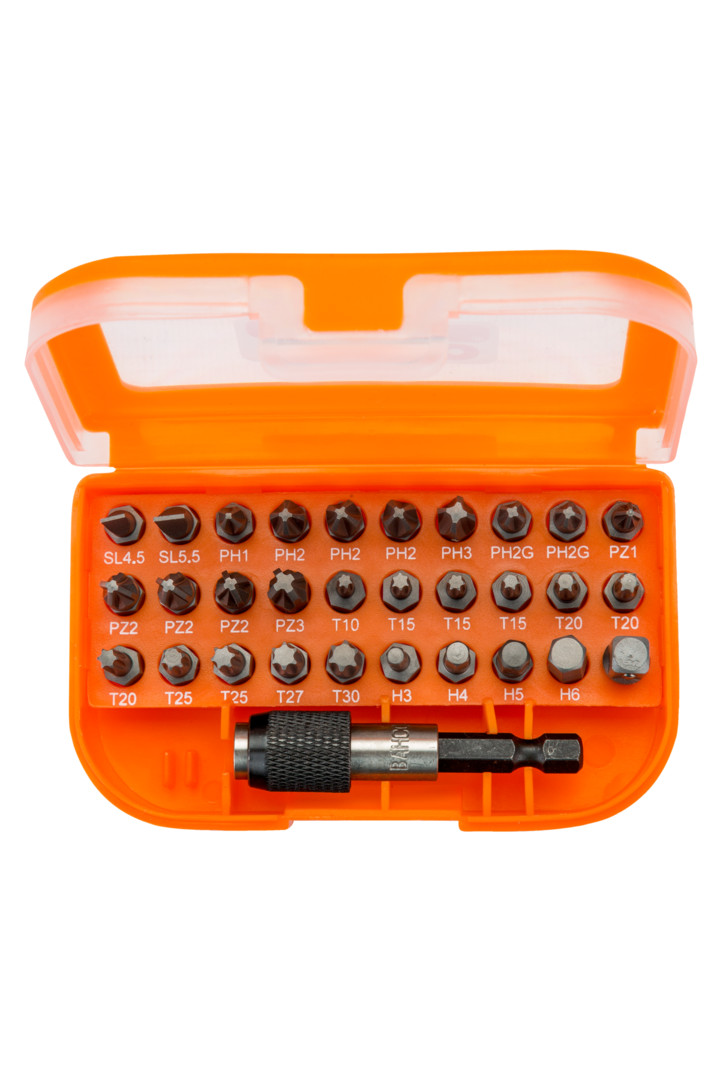 1/4" Bitsatz für Schlitz-, Phillips-, Pozidriv,- TORX®- und Innensechskantschrauben - 31 teilig