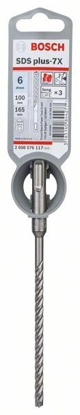 Bosch Professional Hammerbohrer 4-schneidig SDS-Plus 7X - 6,0:165/100mm mit Vollhartmetallkopf