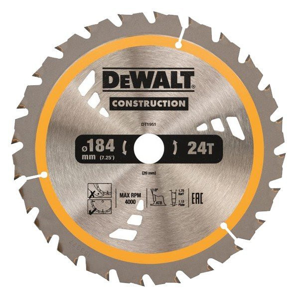 DEWALT HM-Kreissägeblatt 184x1,79x20 WZ Z24; für Akku-Sägen