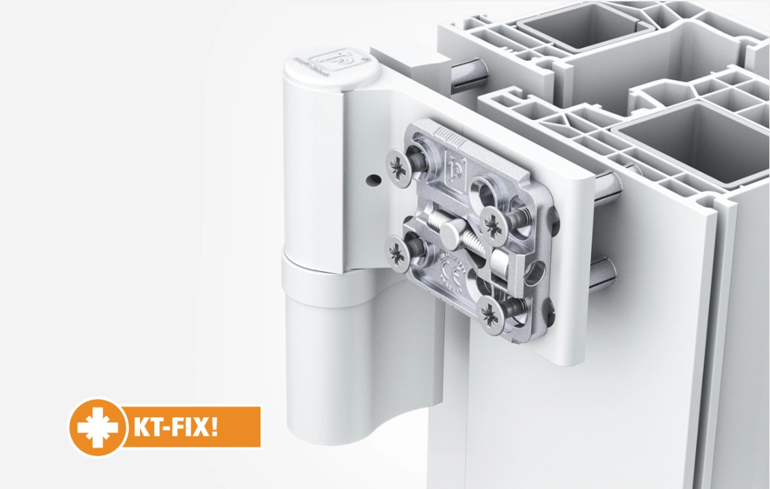 | Befestigungsart | KT-FIX, KT-FIX compact, Direktverschraubung in Rahmen und Flügel, optional mit Hahn Stufenschraube |