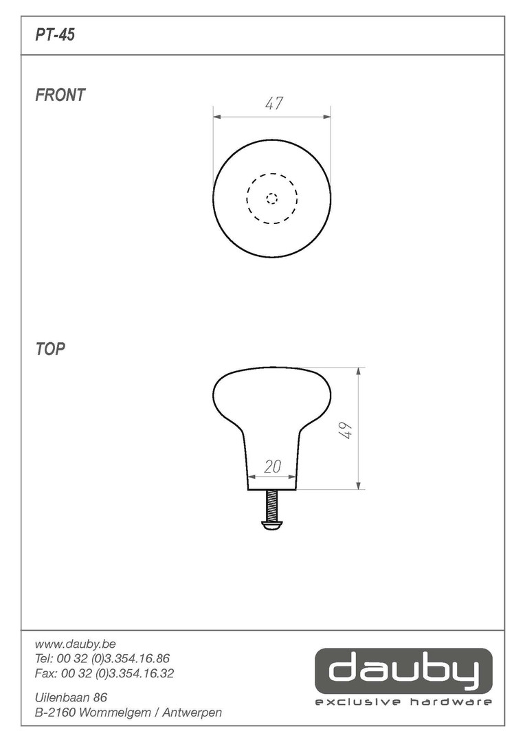 Dauby Möbelknopf "PT 45" - 45mm - Rohe Bronze poliert (RBP)