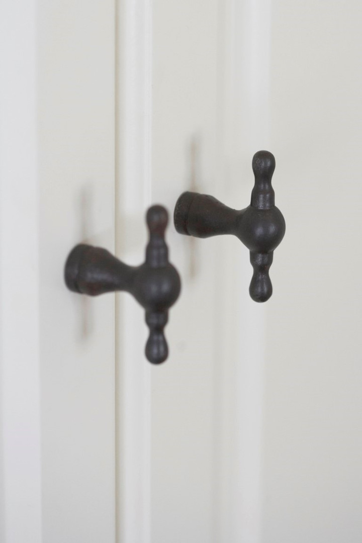 Diese Möbelknöpfe sind ein altes Modell eines Schieberiegels, der von einer hölzernen Straßenbahn- Tür von ca. 1940 wiederverwendet wurde. Obwohl es sich um ein altes Design handelt, passt die Form noch immer zu jeder Stilrichtung. Diese Möbelknöpfe ist verfügbar is 2 verschiedene Abmessungen. (TAP35 - TAP45)