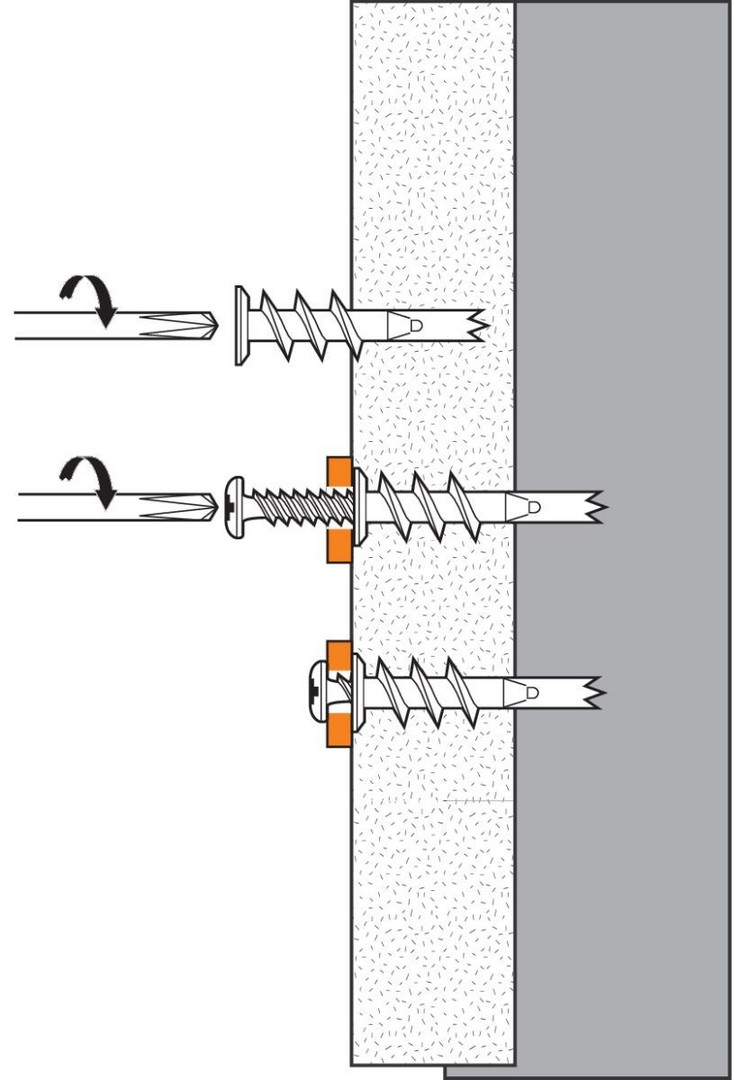 - Selbstbohrende Spitze und scharfes, selbstschneidendes Gewinde ermöglicht formschlüssige Befestigung