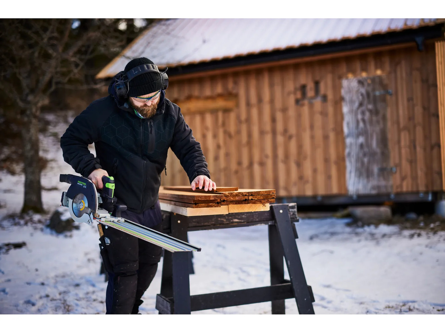 - Zuschnitt von Plattenmaterial wie OSB-Platten, Spanplatten oder druckfeste Holzfaserdämmplatten