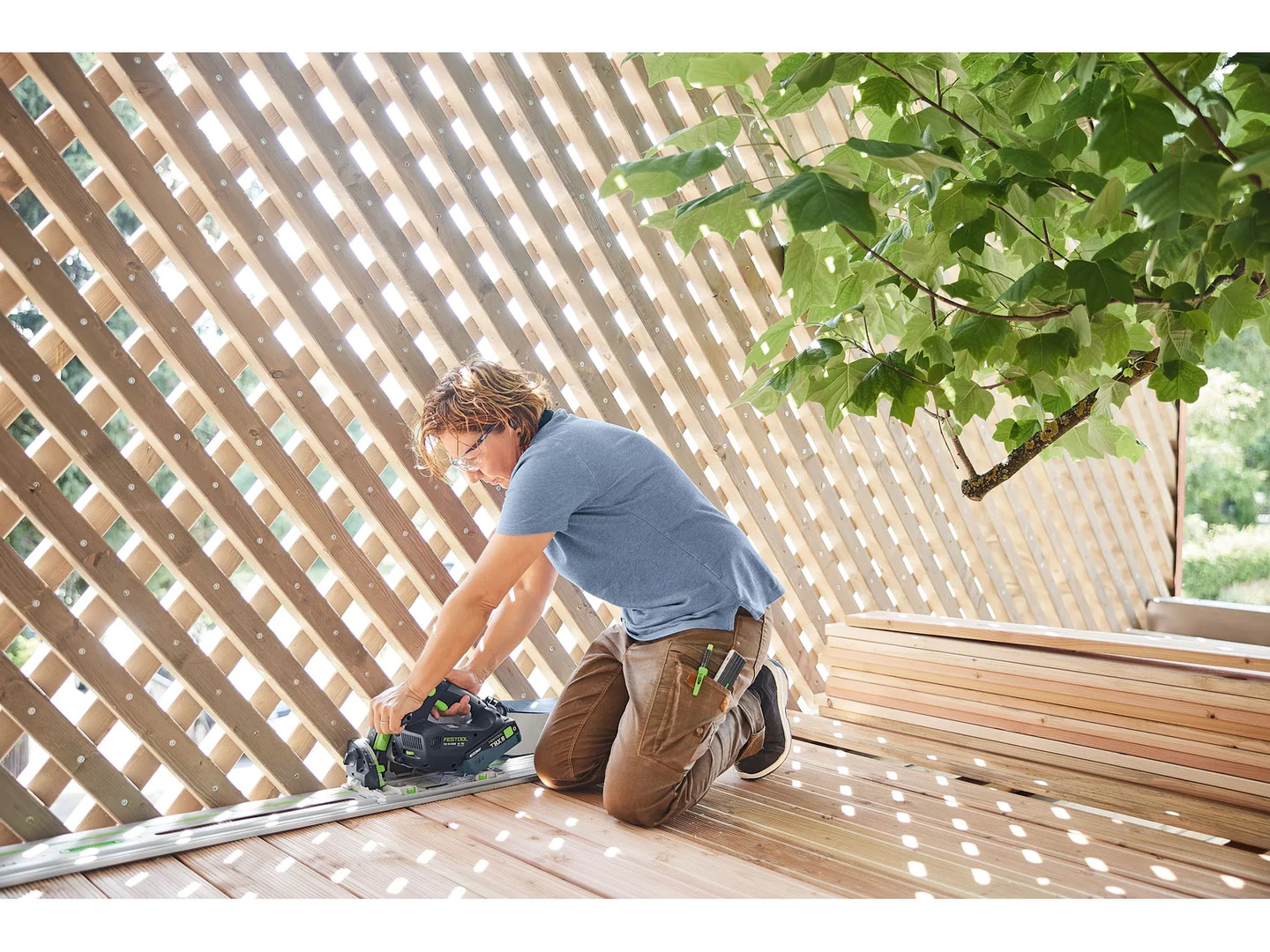 Seit 1980 könnt ihr euch auf zuverlässige Qualität und absolute Präzision von Festool Tauchsägen verlassen. Das Ergebnis dieser Erfahrung? Eine neue Generation der Akku-Tauchsäge – so vielseitig wie deine Herausforderungen, so präzise wie du es gewohnt bist. Die TSC 55 KS bringt volle Leistung und maximale Flexibilität in deinen Arbeitsalltag: Mit nur einem Akkupack ist sie sofort einsatzbereit, liegt perfekt in der Hand und unterstützt dich bei jeder Anwendung. Ihre volle Stärke spürst du vor allem in Kombination mit dem kraftvollen 8,0 Ah Akkupack. In Verbindung mit den passenden 1,6 mm Dünnschnittsägeblättern profitierst du nicht nur von herausragender Schnittperformance, die spezielle Gruppenverzahnung sorgt auch für besonders saubere Schnittergebnisse. Damit du beim Sägen nicht auf Sicherheit verzichten musst, schützt dich der sensorbasierte KickbackStop zuverlässig vor Rückschlägen beim Sägen oder Eintauchen in das Werkstück. Abgerundet wird dein Säge-Erlebnis durch cleveres System-Zubehör: Führungsschienen, Winkelanschläge und Sägetisch sorgen auch bei anspruchsvollen Anwendungen für präzise Ergebnisse – ohne aufwendige Vorbereitung oder Nacharbeit.
