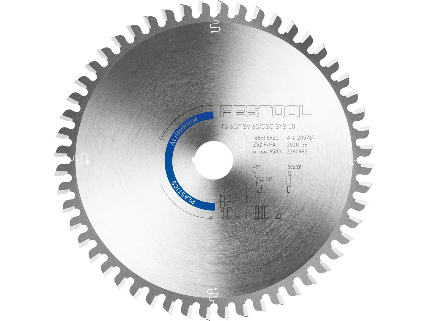 FESTOOL HM-Kreissägeblatt 168x1,8x20 TF Z52; für Aluminium/Kunststoff