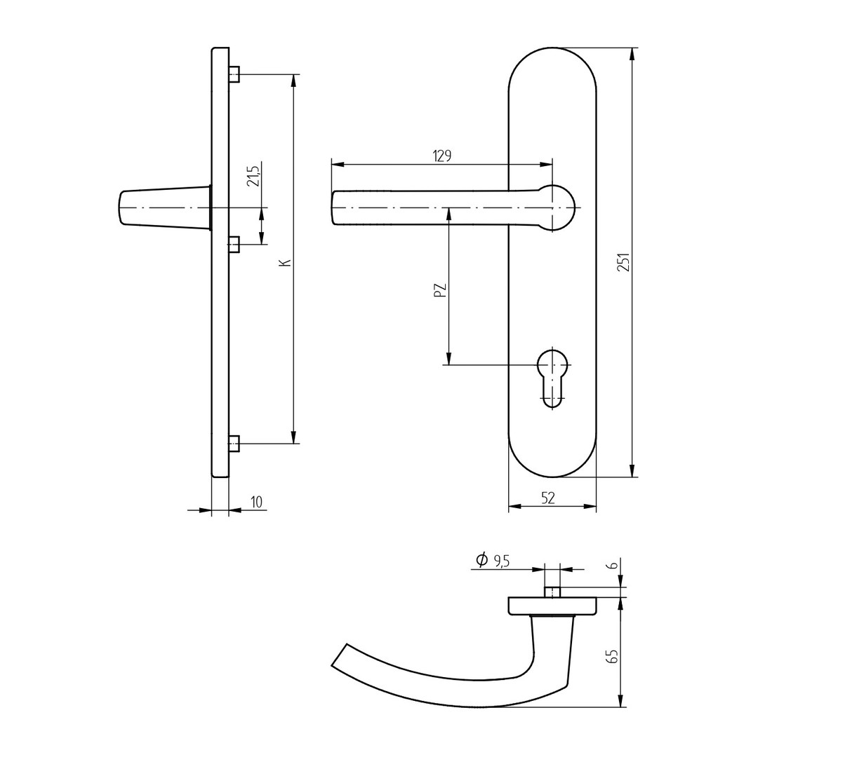 Schutzgarnitur bestehend aus Griff 2200, Außenschild mit Stahlgewinde M6 und gehärteter Stahlunterkonstruktion, Innenschild mit Rückholfeder, beide Schilder abgedeckt mit ovalen Kappen, Verschraubung mit hochfesten Schrauben M6, 8mm Vierkant