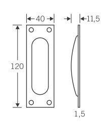 Abmessung: 120 x 40 mm, Ausfräsung: 87 x 28 x 10 mm, Einfrästiefe: 11,5 mm.