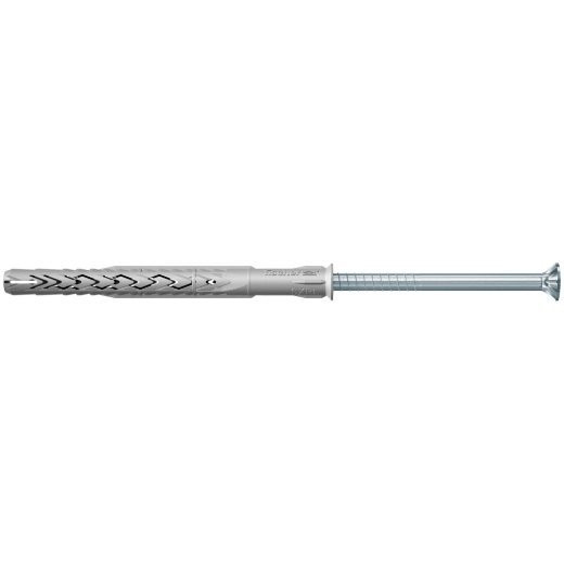 Der fischer Langschaftdübel SXRL-T ist mit der fischer Senkkopfschraube mit TX40-Antrieb für Mehrfachbefestigungen von nicht tragenden Systemen in Mauerwerk, Beton und Porenbeton zugelassen. In Lochsteinmauerwerk leiten die zwei Spreizzonen des Dübels gleichmäßig Kraft ein, in Porenbeton und Vollbaustoff vereinen sich diese zu einem langen Spreizelement. Mit der Sicherheitsschraube aus galvanisch verzinktem Stahl ist der Langschaftdübel für Befestigungen im Innenbereich wie Fenstern, Garderoben, Hängeschränken oder TV-Konsolen geeignet.