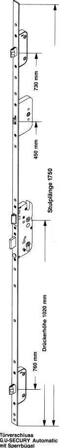 Türverschluss Secury Automatic mit Sperrbügel, Drückerhöhe 1020 mm, Stulphöhe 1750 mm