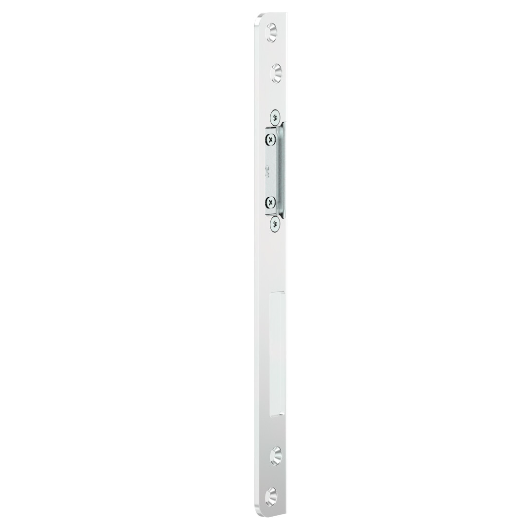 Schließbleche mit Standard-Riegeldurchbruch für Türen aus Holz nach DIN 18103, mit Austauschstück 20 , für nachträglichen Einbau elektrischer Türöffner.