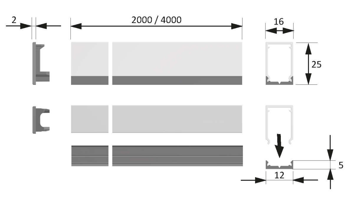 LED ChannelLine A, 5er Set L=4000, Alu- und Abdeckprofil
