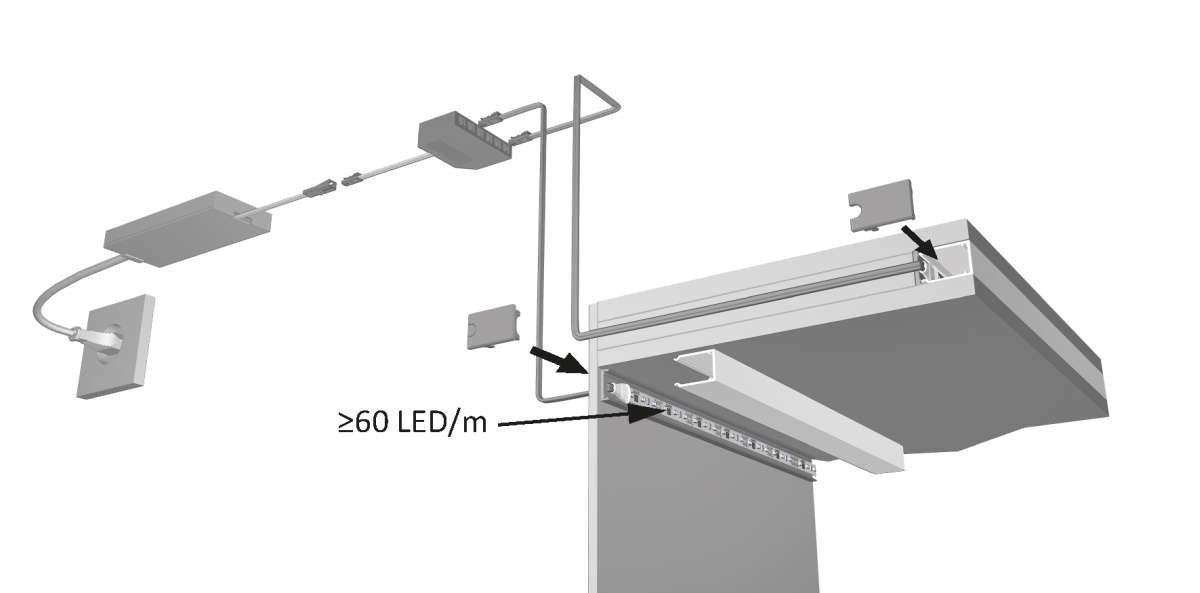 • Kantenbeleuchtung für Küchenarbeitsplattenoder vertikal zwischen Fronten