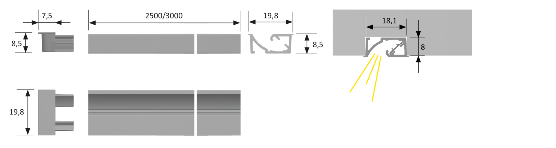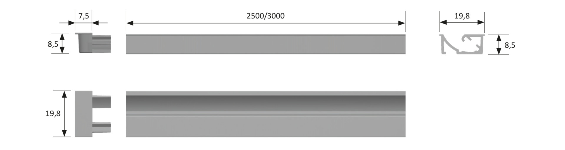 | Ausführung | 3000 mm, Alu |