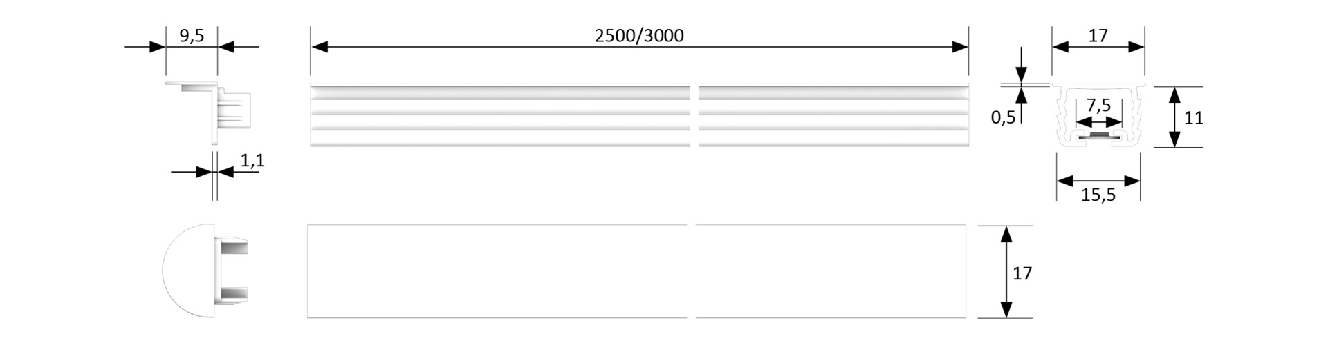 HALEMEIER ChannelLine T1 L=2500 Einbauprofil Kunststoff Opal