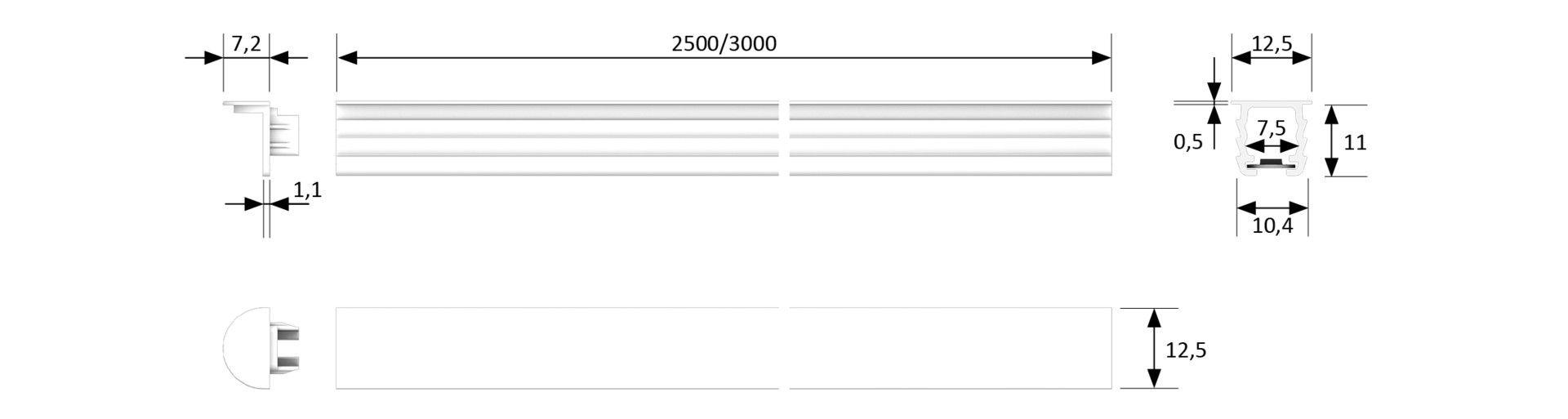 HALEMEIER ChannelLine T2 L=3000 Einbauprofil Kunststoff Opal