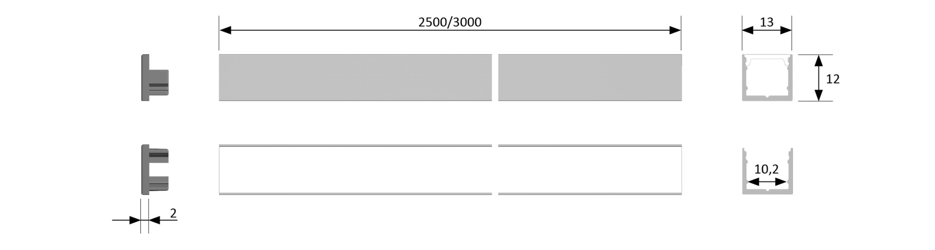 | Ausführung | 2500 mm, Alu/ Opal |