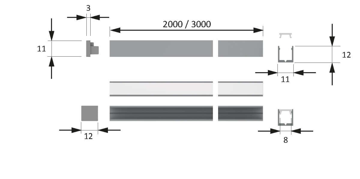 LED ChannelLine i3 Profil, opal, 10erSet L=2000mm, Alu- und Abdeckprofil