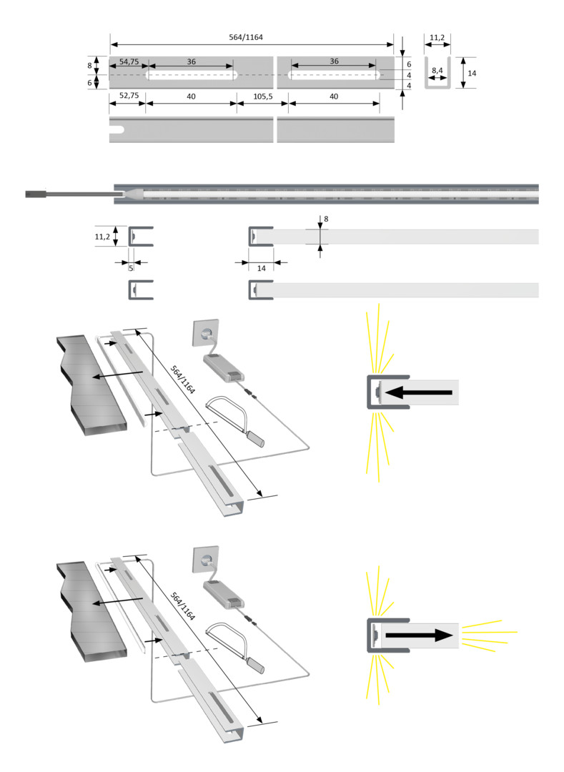 HALEMEIER GlasLine up&down L=564mm 4 Lichtfenster 14x11,2x1,4 Alu