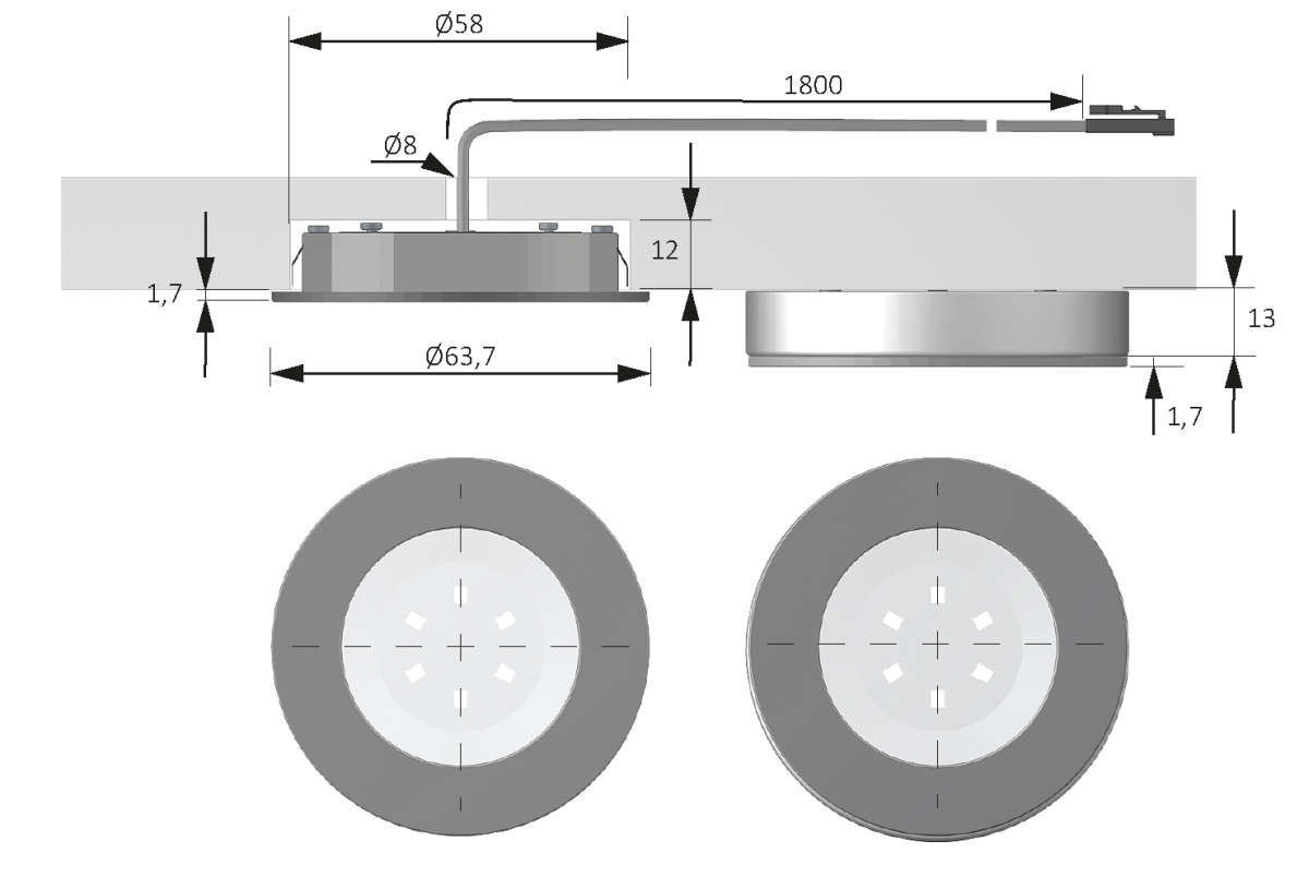 Einbau Durchmesser 58 mm