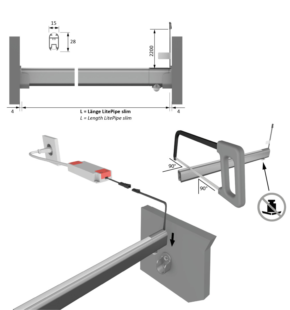 HALEMEIER LitePipe slim 1192mm Alu ww 12VDC 8,4W LTG 2,2m M1