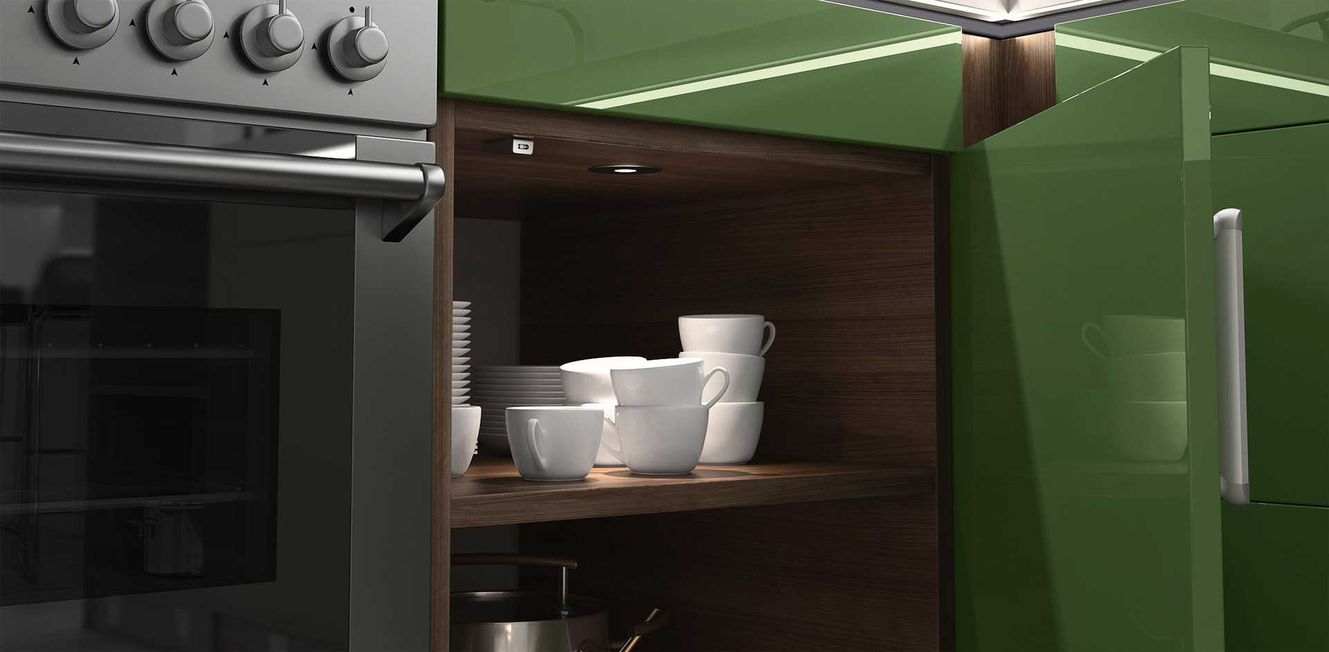 - Der Anbauschalter ist perfekt im Unterboden oberhalb einer Arbeitsfläche