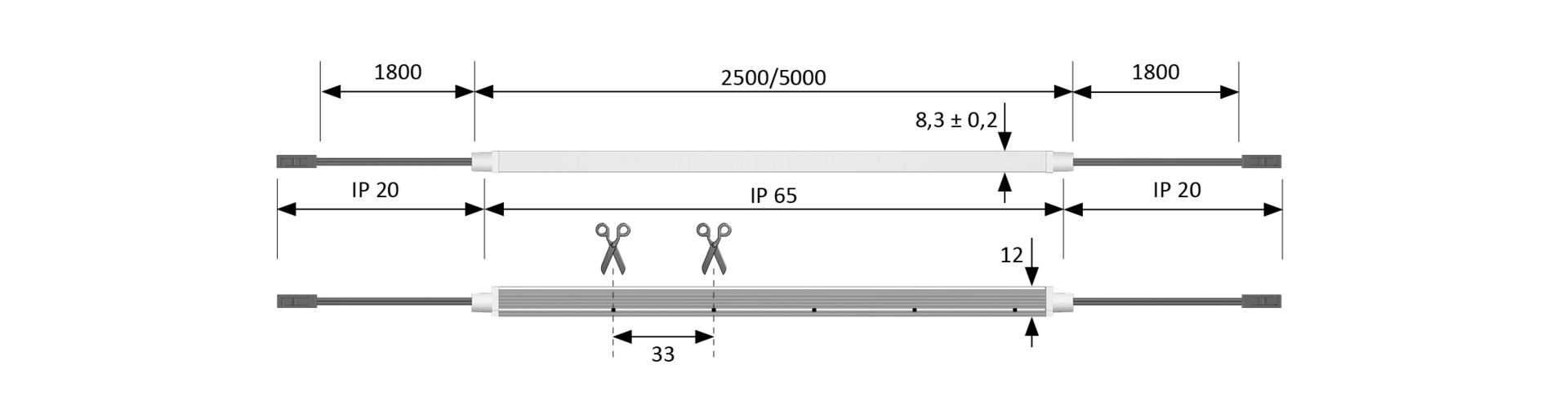 | Ausführung | 2500 mm (max. 18,75 W) |