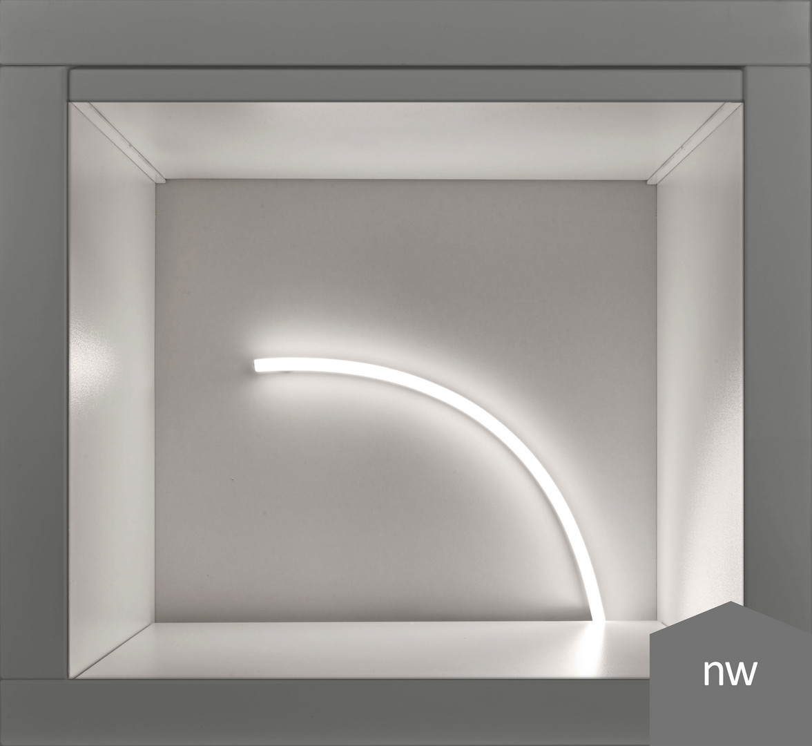 Produktvorteile: Gleichmäßige, homogene Leuchtfläche, seitliche Biegerichtung (siehe Zeichnung), flächenbündiges Einlassen möglich, individuell kürzbar alle 33 mm.Produkteigenschaften: Schutz gegen Strahlwasser aus allen Richtungen (IP 65), feuchtraumgeeignet, beidseitige Zuleitung (ein Schnitt, zwei Leuchten), siehe Zeichnung.Anwendung: Runde Theken, Dekorflächen mit sichtbaren Rundungen, besonders schmale Schrankinnenbeleuchtung.Bestellhinweis: Verpackungseinheit besteht aus 1 Stück Versa, 2 Endkappen und einer Silikontube zum Abdichten für Feuchtraum-Anwendungen.