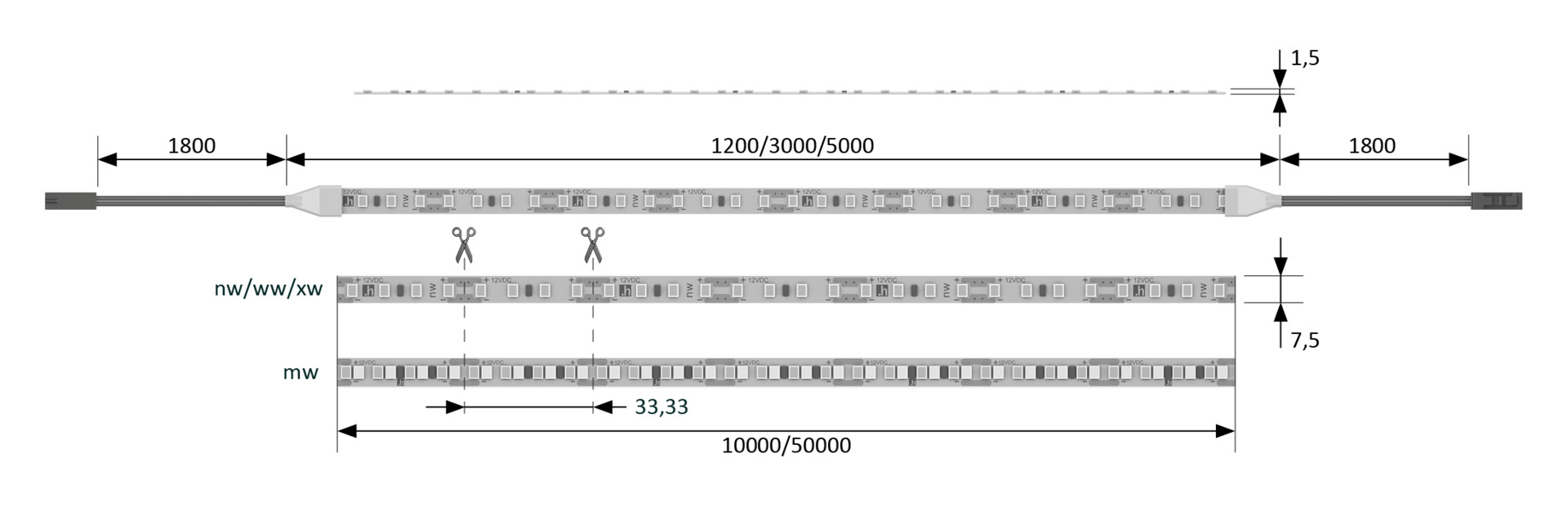 HALEMEIER Versa Inside 1200 12VDC mw 2x120LED/m L=50m 8W/m Konfektionsrolle