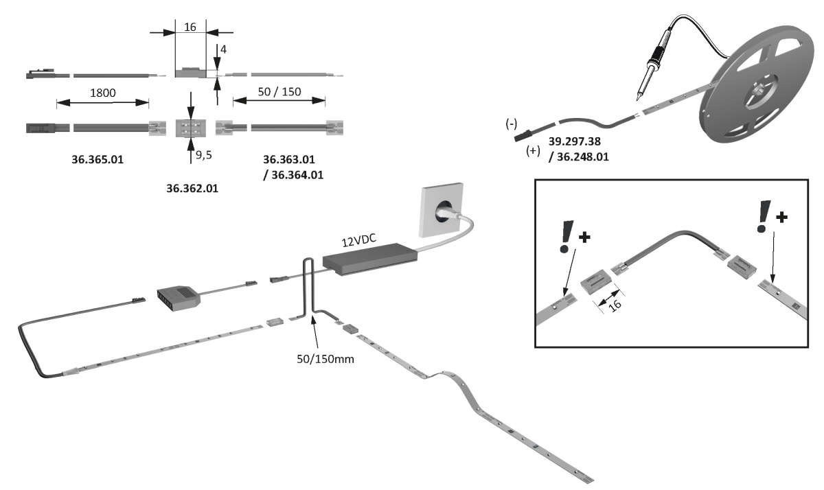 - Zur 10 m Rolle werden Einspeiser bzw. Anlötleitungen benötigt