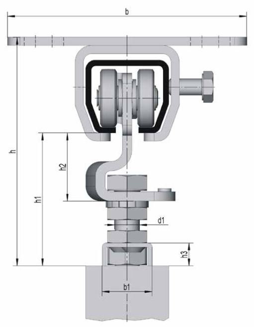 Die Einbauhöhe bei Montage mit Deckenmuffe, Laufschiene, Rollapparat