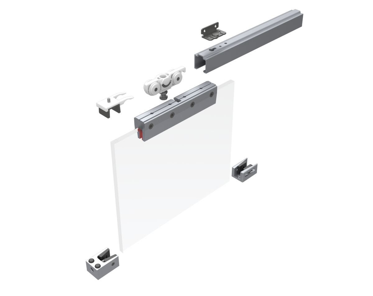 für einflügelige Glasschiebetüranlagen bis 80 kg Flügelgewicht und 8 und 10 mm Glasstärke (ESG)