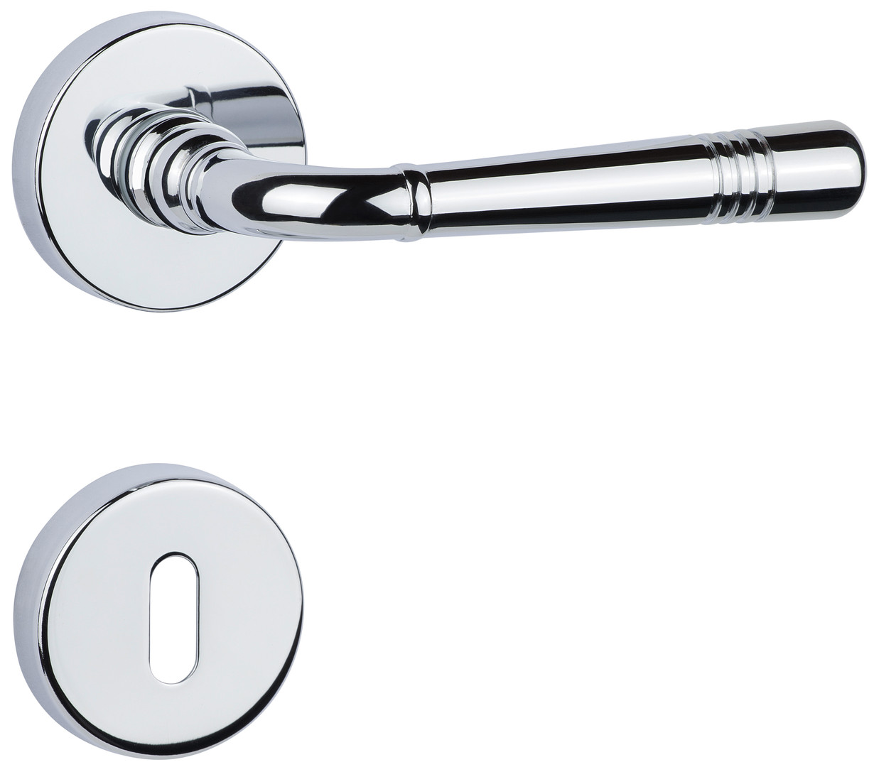 ZT-Drückergarnitur 1174 LYON, mit Rosetten 2031 K, Ausf.: BB, mit Rückholfeder, Türstärke 38 - 42 mm, Oberfl. 04 (Glanzchrom) |