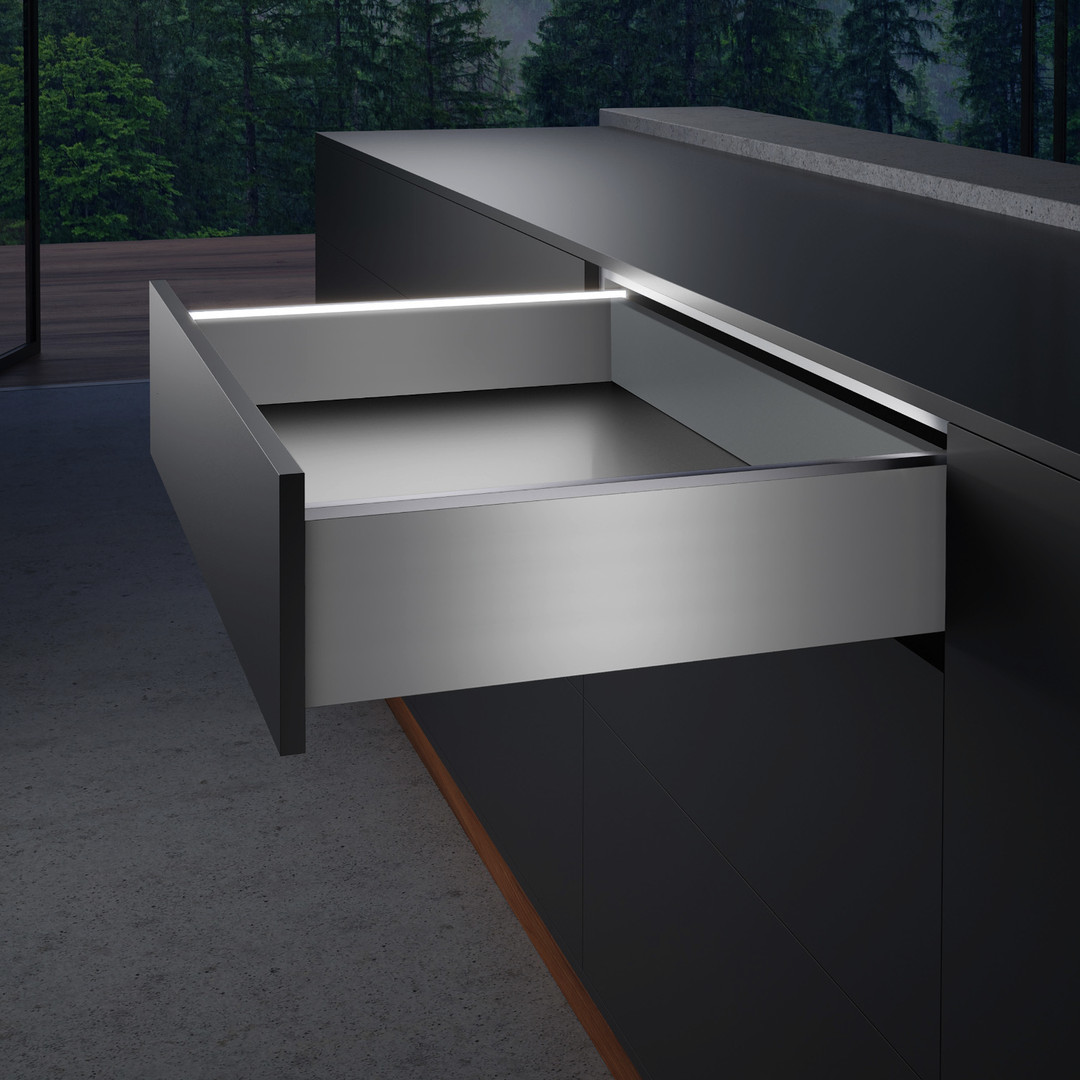 • Effektvolle Akzentbeleuchtung für AvanTech YOU, wahlweise in das Schubkasteninnere oder in den Raum gerichtet
