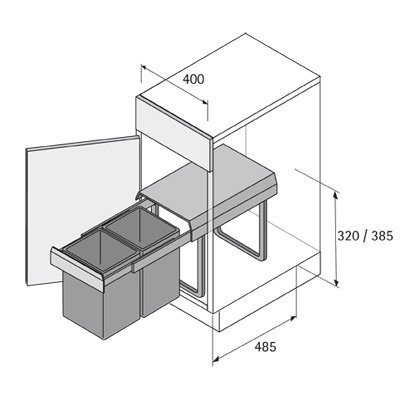 HETTICH Bin.it Duo II - 400 Einbauabfallsammler, 338 x 485, grau