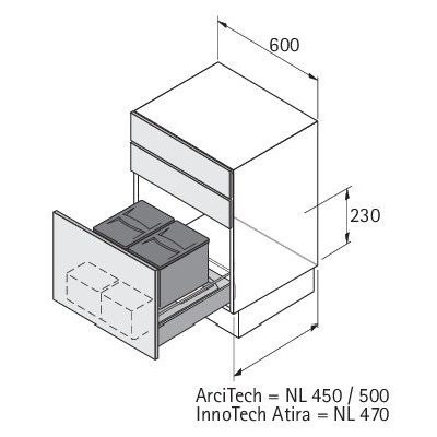 • Einbauhöhe 230 mm ab Oberkante Schubkastenboden