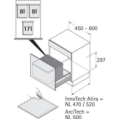 HETTICH Bin.it Vario 450 - 600, 33 l (1 x 17 l / 2 x 8 l)