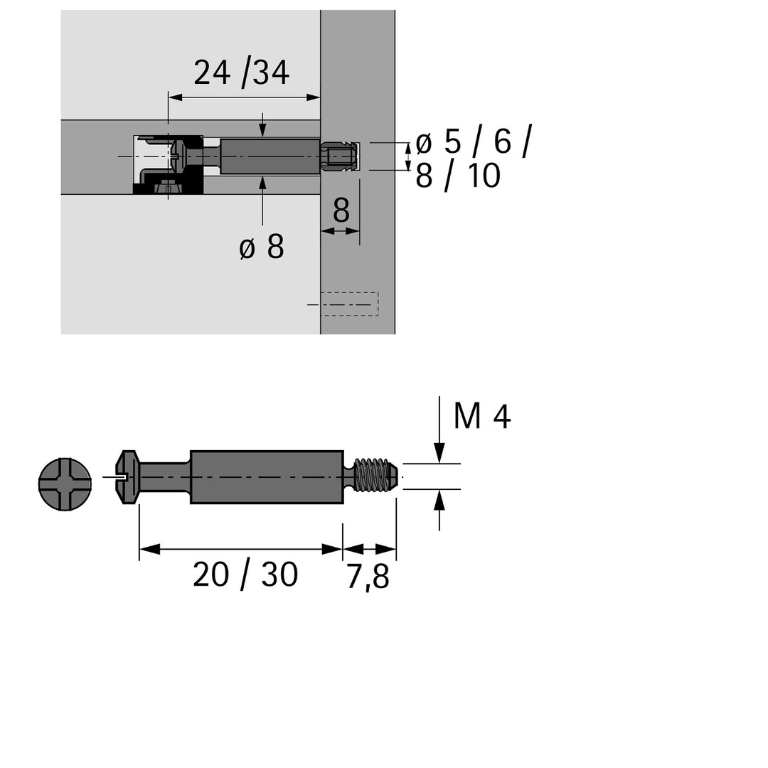 HETTICH Einschraubdübel DU 428, 20 mm, blank