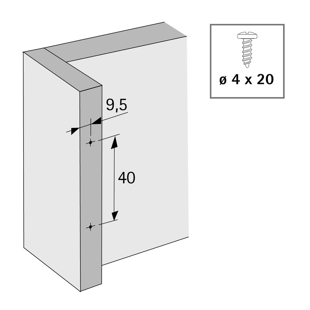 | Montageplatte / Lochreihe LR / Lochabstand LA | Face-Frame-Montageplatte / LR 9,5 / LA 40 |