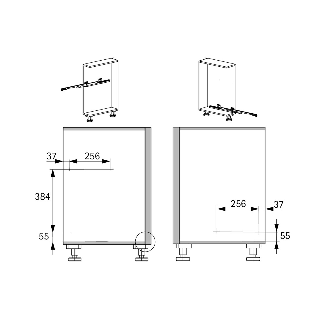 • Frontauszug für Unterschränke