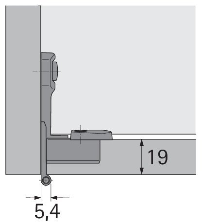 - Eingelenkscharnier mit Aufklipstechnik und sichtbarer Rolle