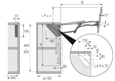 HETTICH Hochfalt-Beschlag Lift Advanced HF, 440 - 550