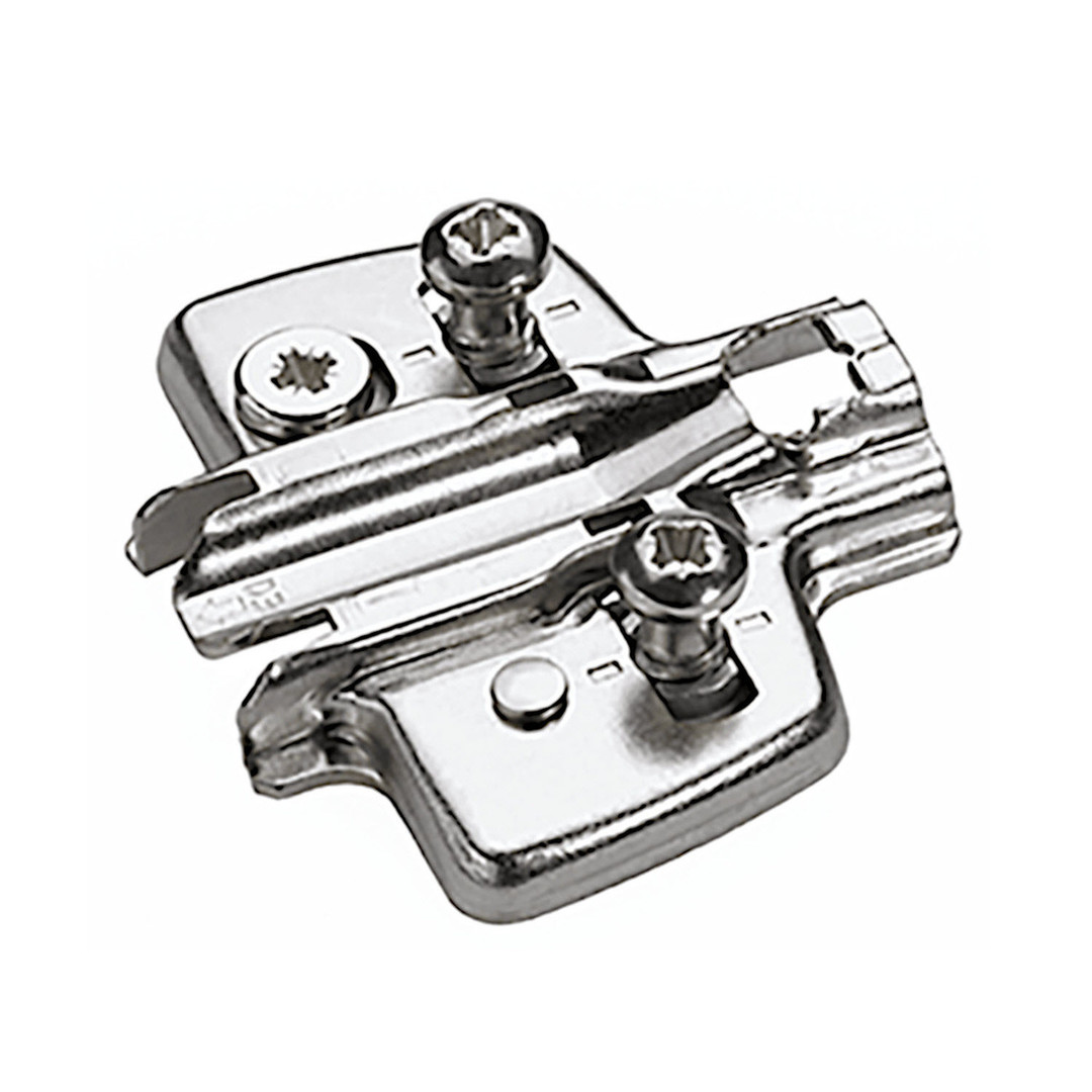 Hettich Kreuzmontageplatte mit Direkt-Höhenverstellung, vernickelt, Lochreihe 37 x 32 mm, mit Euroschrauben (für Bohrung ø5 x 8 mm), Distanz 3,0 mm