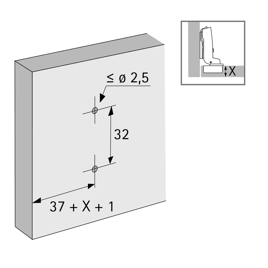 - Montage mit Spanplattenschrauben (für Bohrung ø2,5 mm)