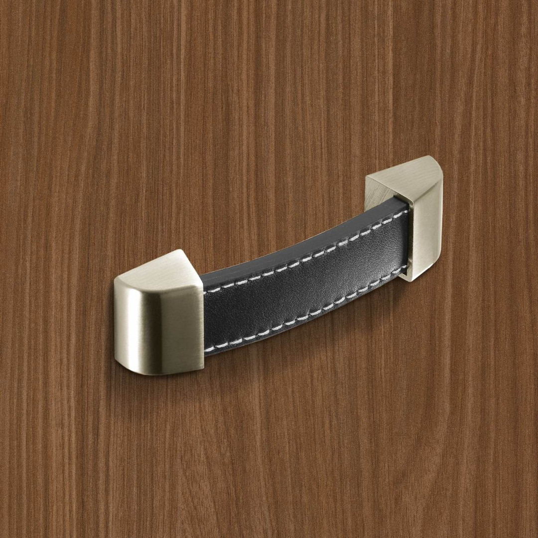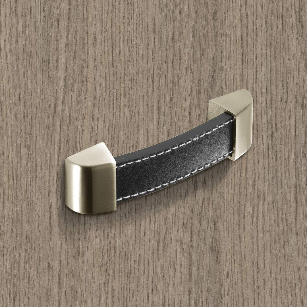 HETTICH Möbelgriff "Agliano" - Leder braun / Edelstahl Optik gebürstet - BA 128mm