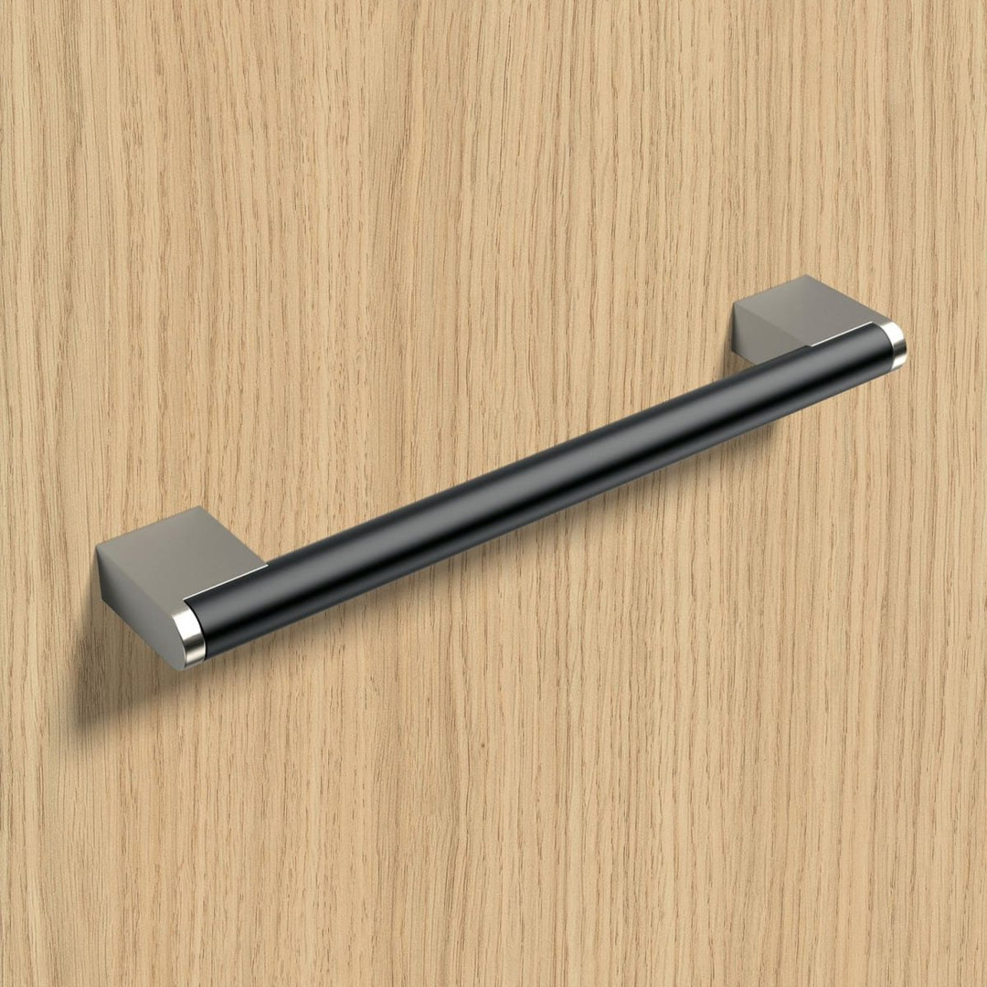 HETTICH Möbelgriff "Brema" - Schwarz matt / Edelstahl Optik gebürstet - BA 256mm