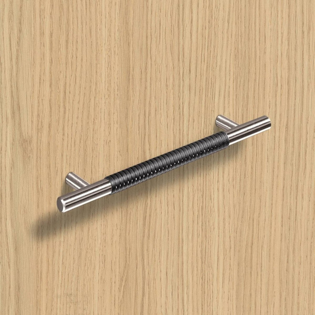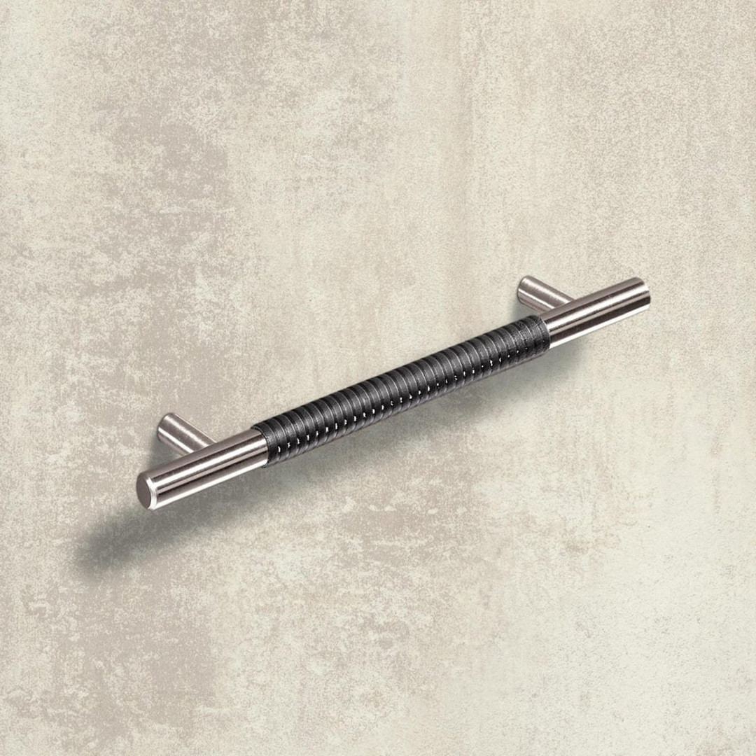 HETTICH Möbelgriff "Byzantia" - Leder dunkelbraun gemustert / Edelstahl Optik gebürstet - BA 128mm