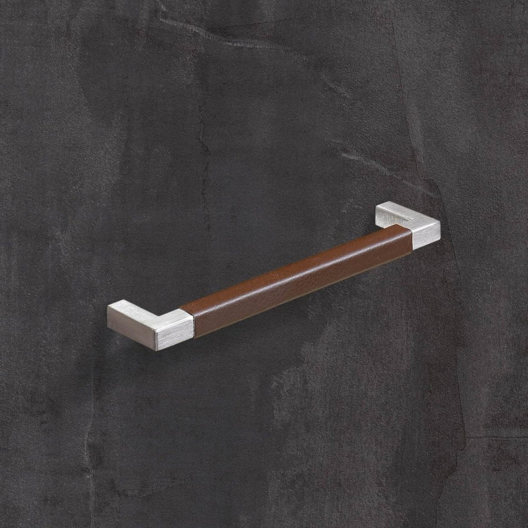 HETTICH Möbelgriff "Getafe" - Leder hellbraun / Edelstahl gebürstet - BA 160mm