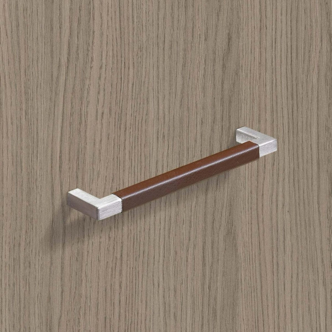 HETTICH Möbelgriff "Getafe" - Leder hellbraun / Edelstahl gebürstet - BA 224mm
