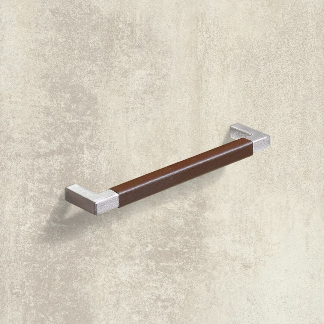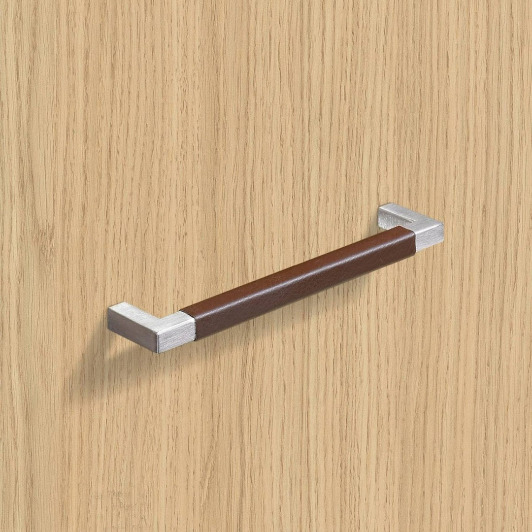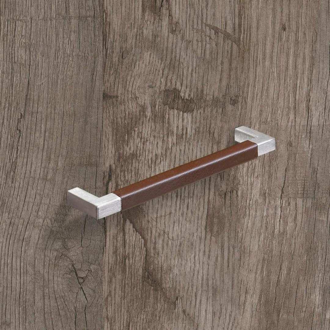 HETTICH Möbelgriff "Getafe" - Leder hellbraun / Edelstahl gebürstet - BA 224mm